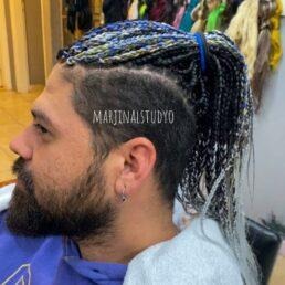 Erkekler için Afrika saç örgüsü, birçok farklı stili içerir. Bunlar arasında “cornrows” adı verilen ince örgü desenleri, “box braids” adı verilen daha kalın örgüler, “twists” adı verilen saçların birbirine dolanmasıyla yapılan desenler ve diğer birçok örgü stili bulunur.